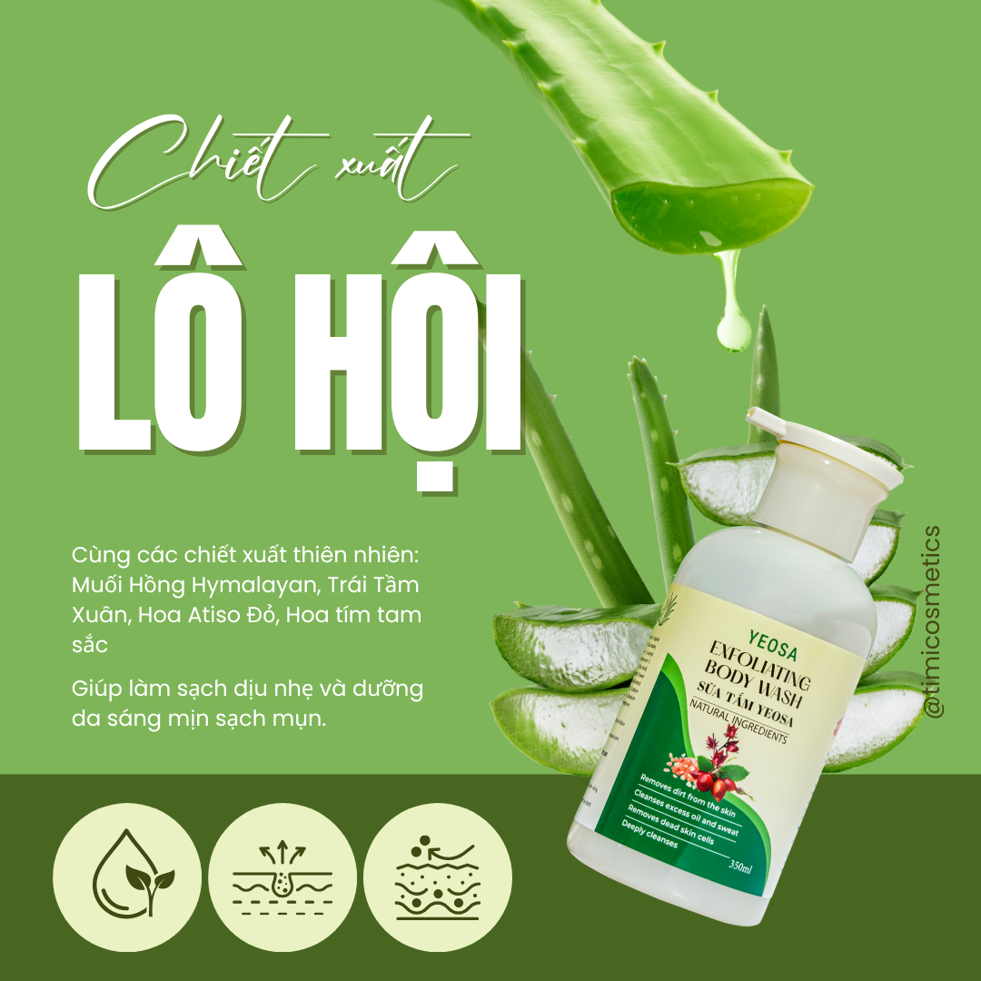 🚿 1. Sữa Tắm Tẩy Tế Bào Chết YEOSA 350 ml : Trải nghiệm sự sảng khoái và sạch sẽ mỗi khi bạn tắm với Sữa Tắm Tẩy Tế Bào Chết YEOSA. Với công thức đặc biệt, sản phẩm không chỉ làm sạch hiệu quả mà còn dưỡng ẩm, cân bằng và bảo vệ da khỏi vi khuẩn gây viêm mụn. Chiết xuất từ thiên nhiên như Lô Hội, Hoa Atiso đỏ và Muối Hồng Himalaya sẽ làm da bạn trở nên sáng khoẻ và mềm mại.