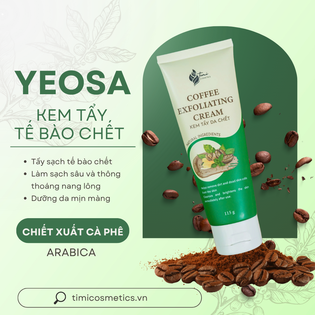 🌿 2. Kem Tẩy Tế Bào Chết YEOSA 115g : Với bí quyết từ bột hạt cà phê Arabica, Kem Tẩy Tế Bào Chết YEOSA sẽ giúp làn da bạn trở nên sáng mịn và tươi trẻ hơn bao giờ hết. Loại bỏ bụi bẩn và tế bào chết, sản phẩm còn cân bằng hệ vi sinh vật và độ ẩm trên da, giúp da luôn khỏe mạnh và đàn hồi.