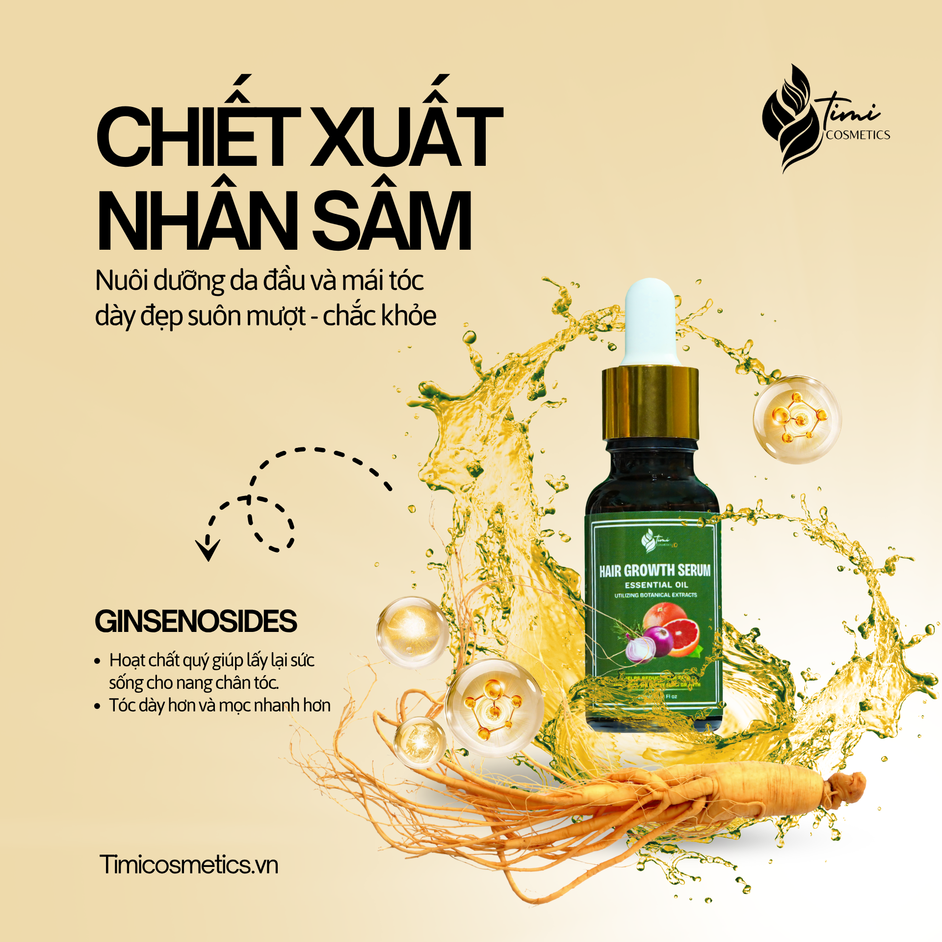 Serum TIM chứa các thành phần dược liệu quý như chiết xuất Bông cải xanh, chiết xuất củ hành tây, chiết xuất nhân sâm đen, Chiết xuất Olive, chiết xuất Hương Thảo tinh chất dầu thầu dầu, và tinh chất vỏ cam chanh bưởi, cùng nhiều vitamin và khoáng chất thiết yếu. Nhờ đó, sản phẩm giúp kích thích mọc tóc nhanh chóng và khỏe mạnh hơn bao giờ hết! Chỉ cần sử dụng đều đặn trong 2-3 tuần, bạn sẽ thấy sự khác biệt rõ rệt trên mái tóc của mình. 🚀💇♂️